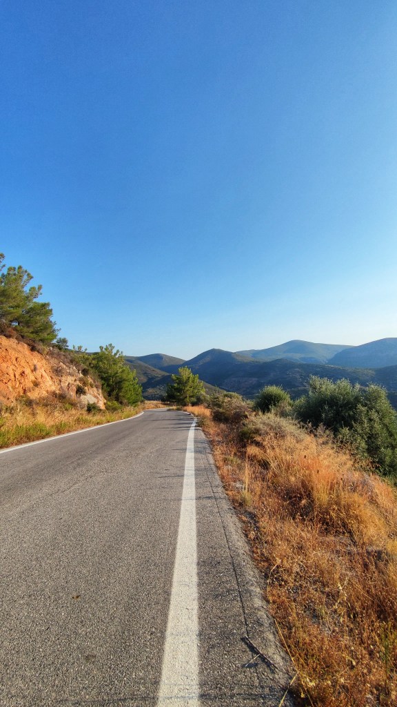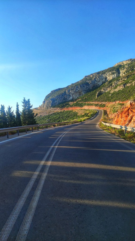 The roads in Lakonia and Mani are stunning, the traffic in the morning is almost non-existent. There aren’t big climbs, but a pleasant eternal flow of up & downs and tiny hairpins climbing up the many hills. The gradients are gentle, the asphalt on the main roads close to perfection, the great views make the rest.