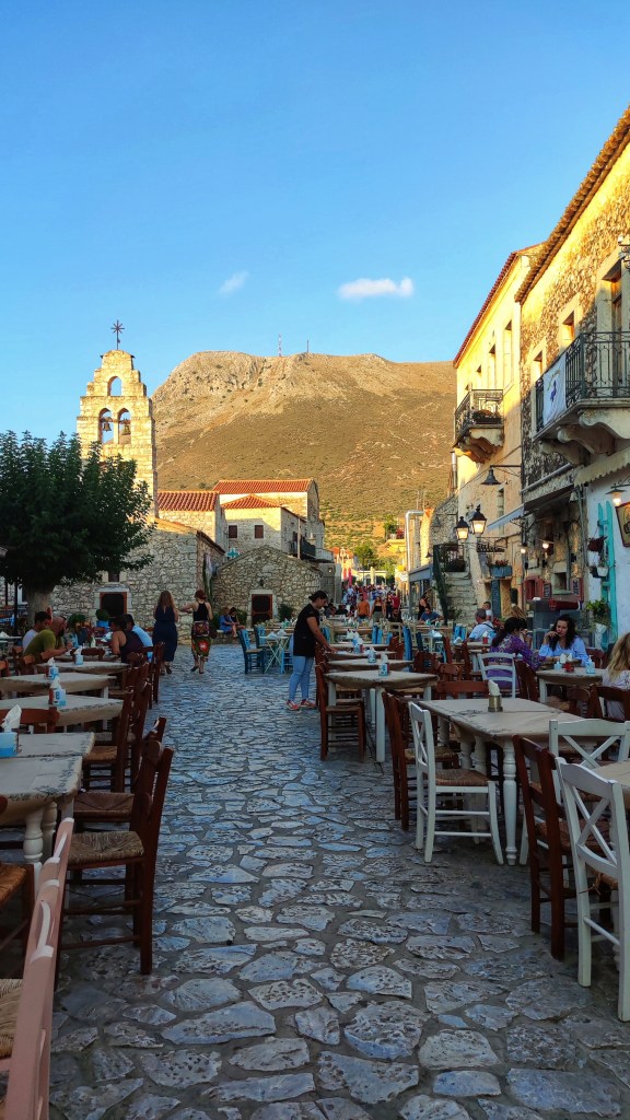 • The towns, especially Areopoli, that can become crowded and a bit too loud in the evenings but it is absolutely lovely. Mandatory to have at least a dinner here enjoying the great kontosouvli (spit roasted pork) that can be found in almost every taverna. I suggest also a stop at the abbandoned village of Vathia, a dinner in Kardamili and a visit to Gerolimenas, even if I found the latter a bit too touristic for my holiday mood.