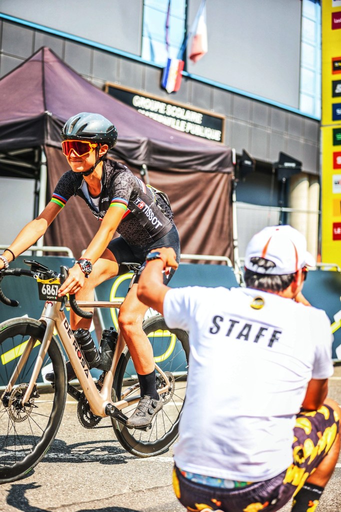• Drink, drink, drink more! Hydration is essential, I always have one bottle filled with water and one with maltodextrin and sip frequently, even if not thirsty. You must stop at every feeding station, even if you feel like you are “losing time”, you are not. You must drink a lot. For the nutrition I always rely on isotonic gels, as they are way easier to eat. I use to take them before every climb and even in the middle, if it is a long one. Having something solid in the stomach is as essential as eating enough gels. On long days like these I always eat a protein bar mid ride and snacks at the feeding stations. Unfortunatly, l’Etape stations weren’t great in terms of food choice, if you have delicate stomach like me, pack extra stuff in your pockets and don’t rely on something you don’t know how will impact you (self reminder to myself too).