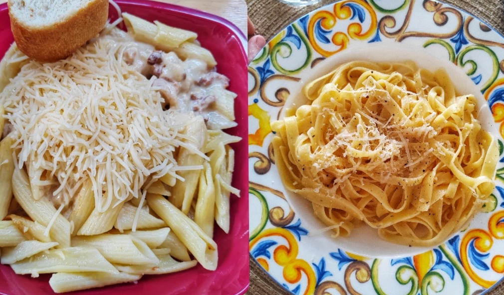 The overcooked pasta party dish vs my recovery pasta dish I had once home, just because I wanted to showcase my cooking skills