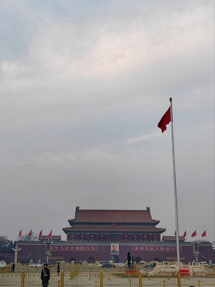 My Winter days in Beijing start under the red flags of Tiananmen Square, the massive epicenter of the city, extending for almost 900 meters and finishing there where the Forbidden City begins. My visit to the Square takes place in a foggy afternoon, just before the flag lowering, that always coincides with the sunset.