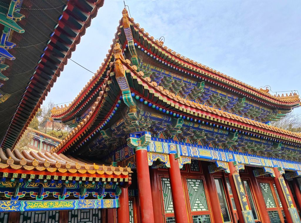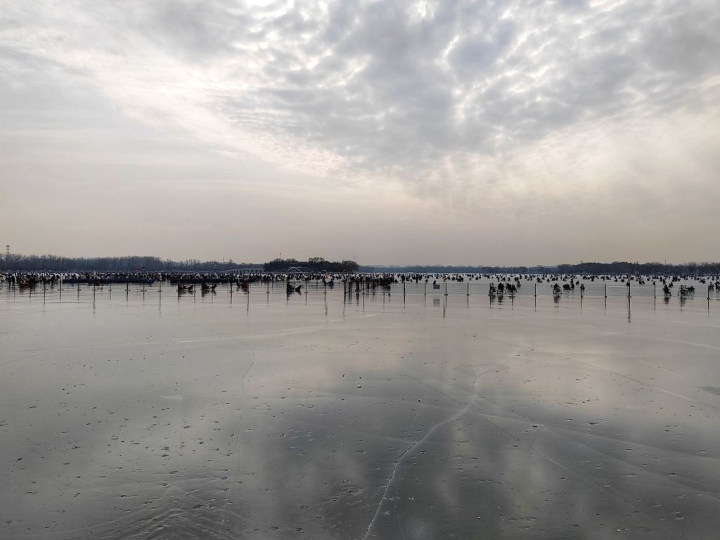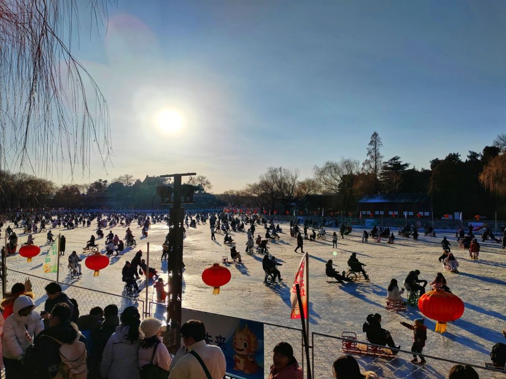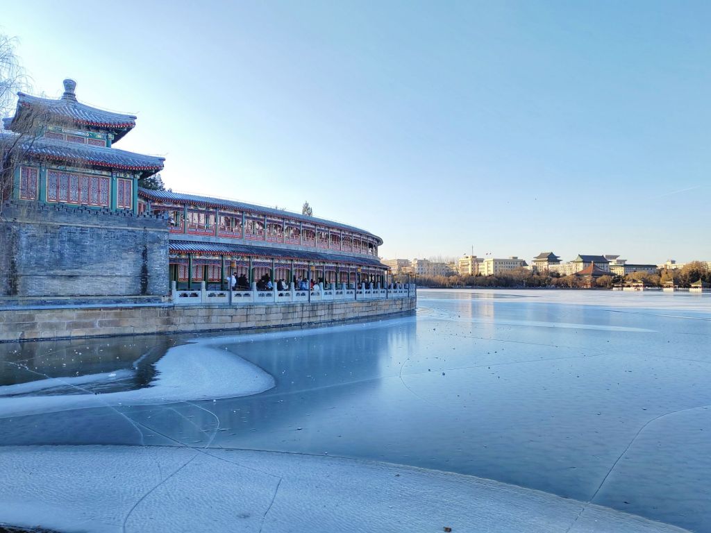 Golden hour light in Baihai ParkThe bridge over the frozen lake in Beihai ParkThe corridor connecting the two sides of the lake in Beihai Park, as you can see the lake is well frozen and there is an area dedicated to ice-skating