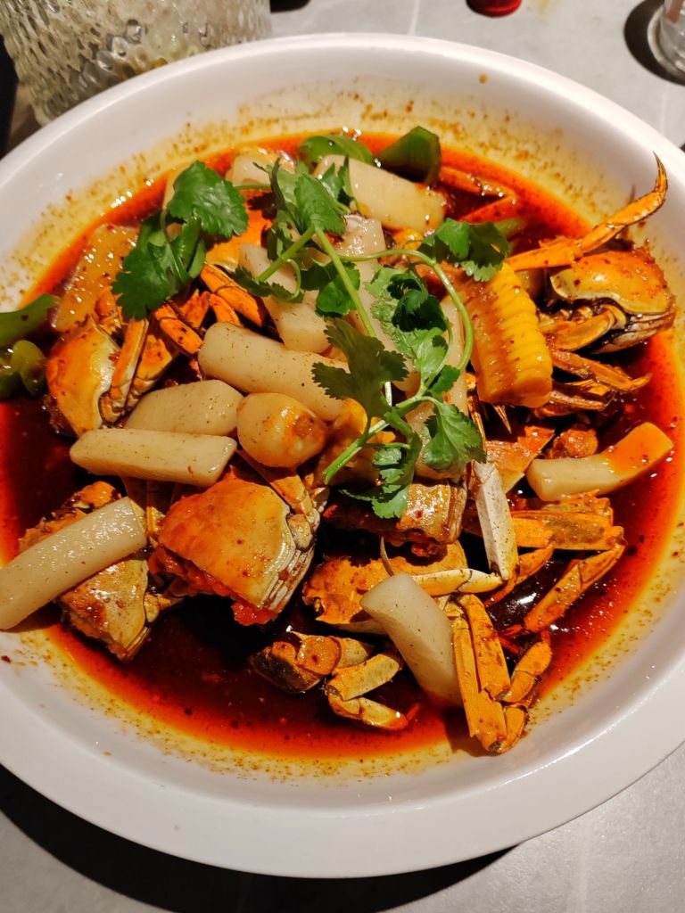 Succulent, oily, tasty crayfish in garlic sauce served with rice cakes. Eating can be messy, hence why you are served with plastic gloves.The crab in a spicy sauce with Sichuan pepper, addictive for spicy food lovers like me.
