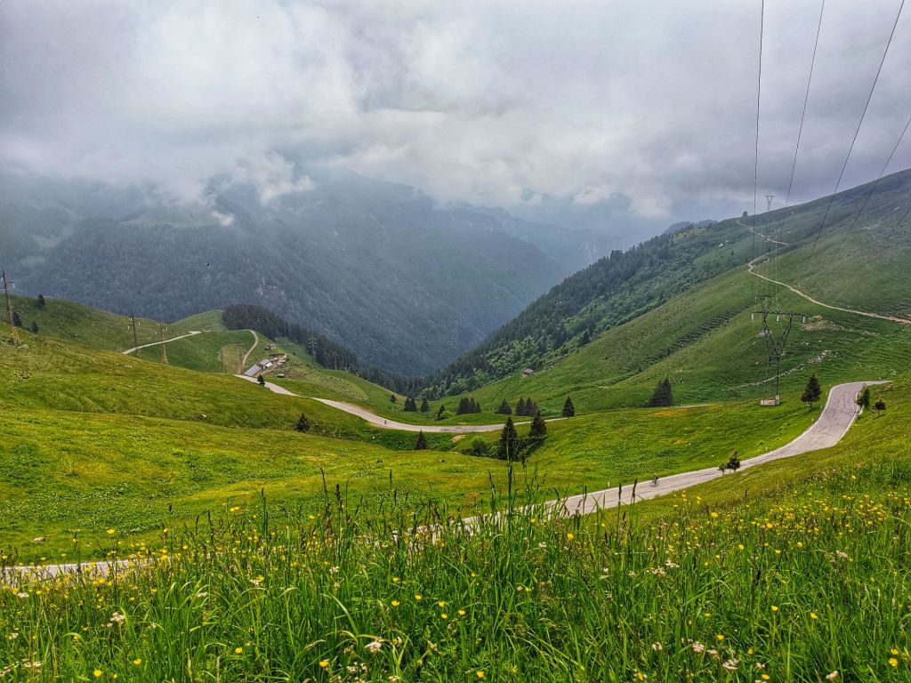 The climb is stunning, only slightly busy on weekends when many drive up to start the hike towards the beautiful Laghi Gemelli. At the top, you will be greeted by a breathtaking view of the Orobie mountains, a small trailer selling coffee and drinks (likely accompanied by a good dose of grappa) and a fountain with fresh water.